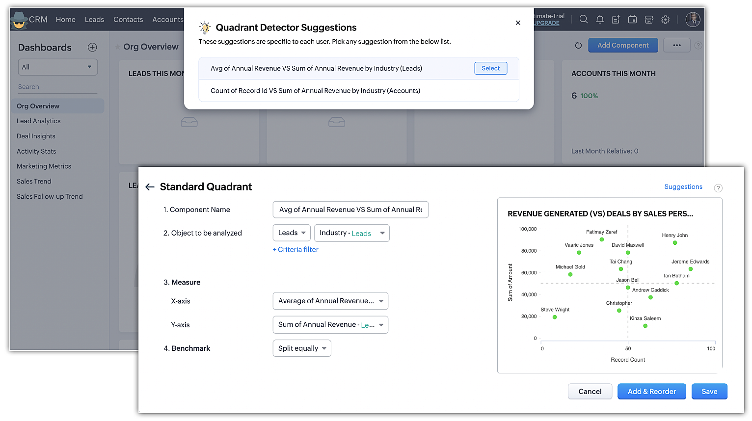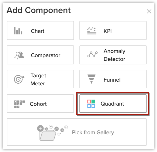 - În fila Analytics, fă clic pe Add Component și apoi pe Quadrant.