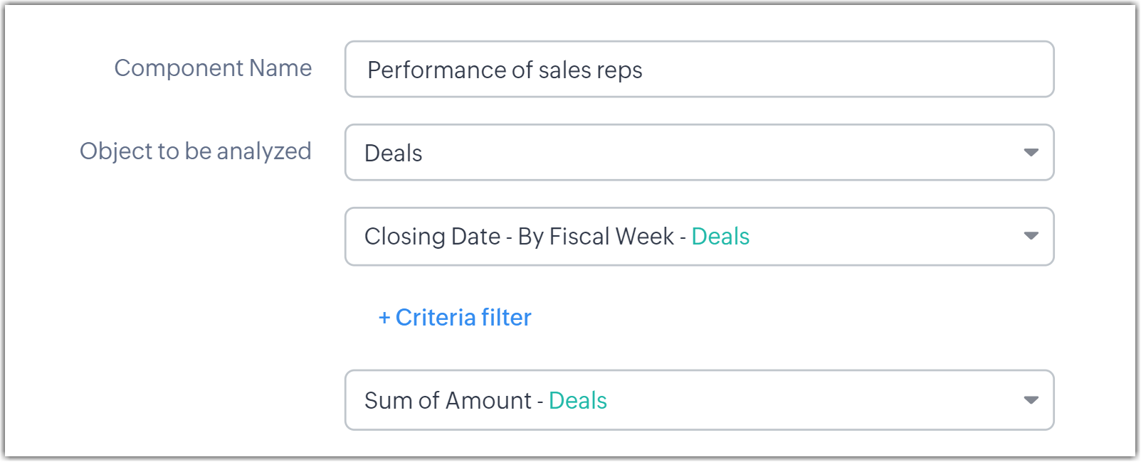 Această opțiune este disponibilă când gruparea selectată este un câmp de tip listă de valori sau câmp numeric. Află mai multe. - Fă clic pe + Critera Filter și adaugă criteriile (până la 10) pe baza cărora vrei să analizezi înregistrările.