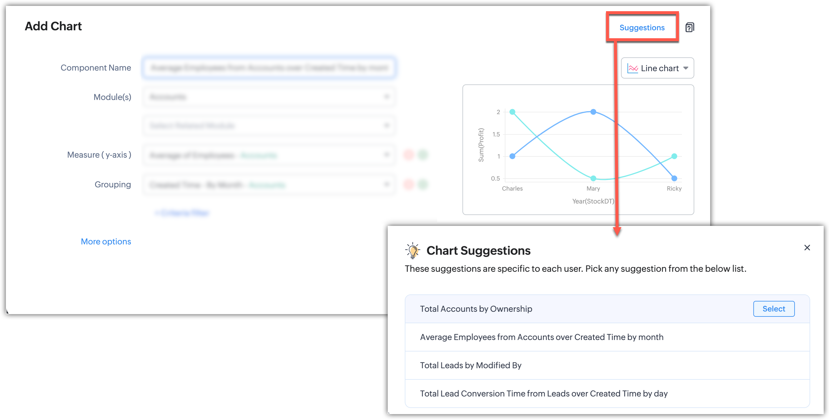 În Zoho CRM graficele îți permit să: