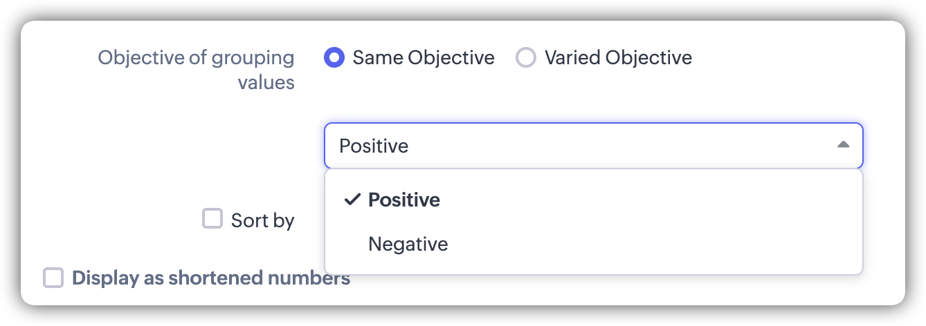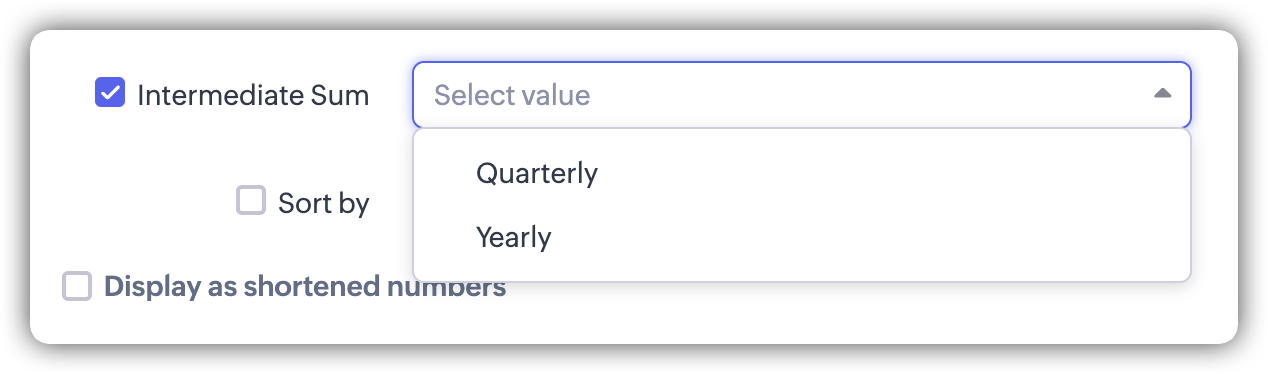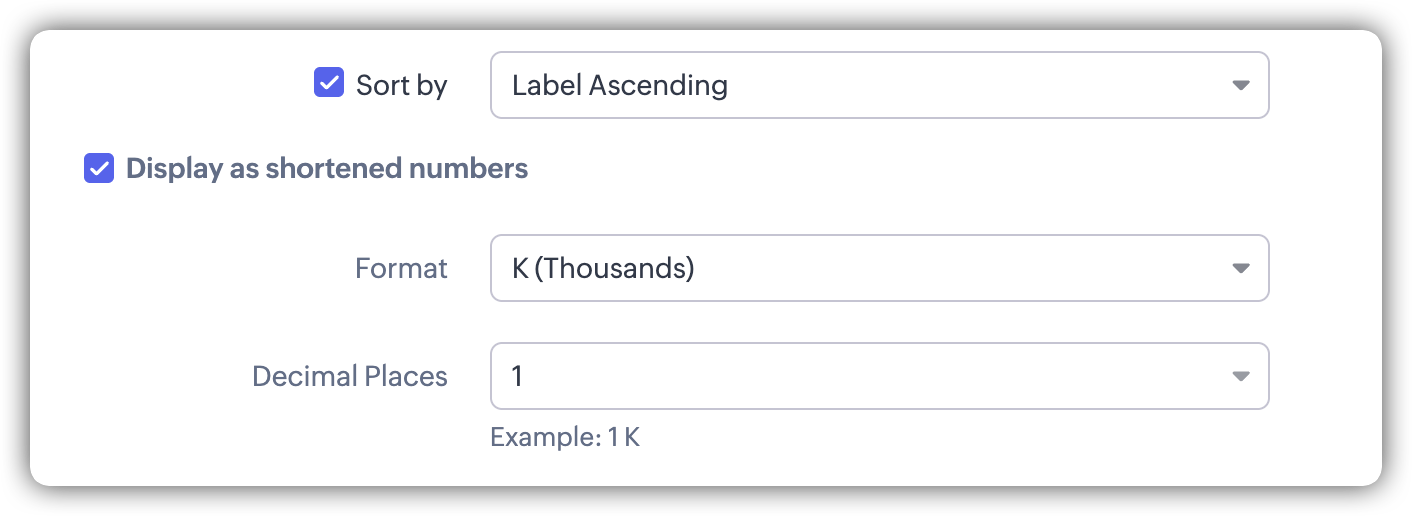 4. Sortare după — pentru a selecta sortarea valorilor.5. Selectează afișarea ca numere prescurtate dacă este necesar și alege formatul și zecimalele.