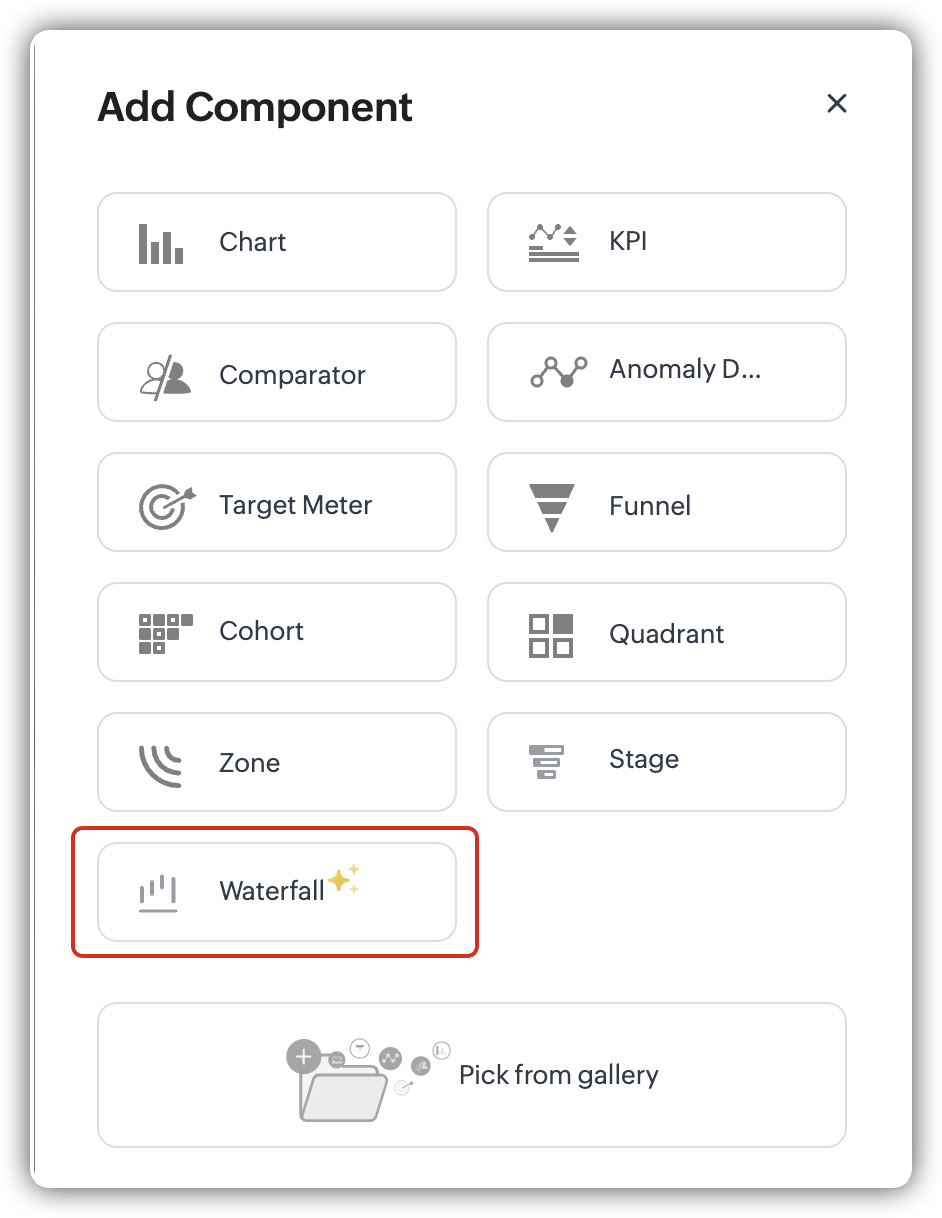 2. Fă clic pe Adaugă componentă și selectează Waterfall.