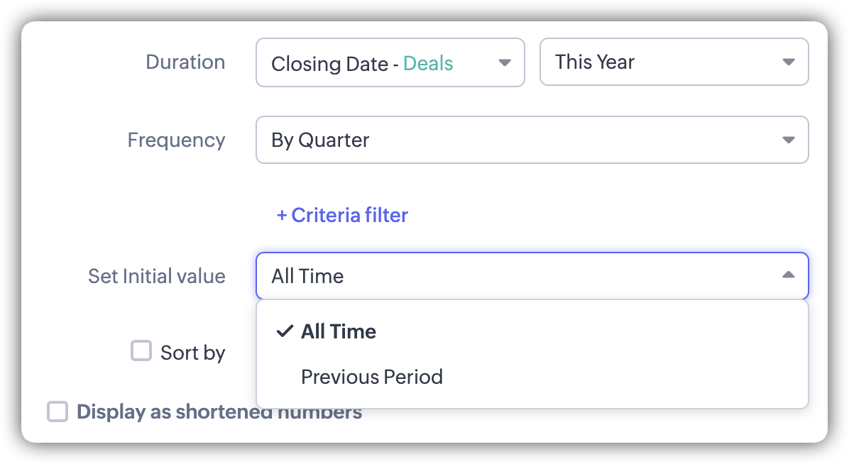 - Setează valoarea inițială la Tot Timpul sau Perioada Anterioară.