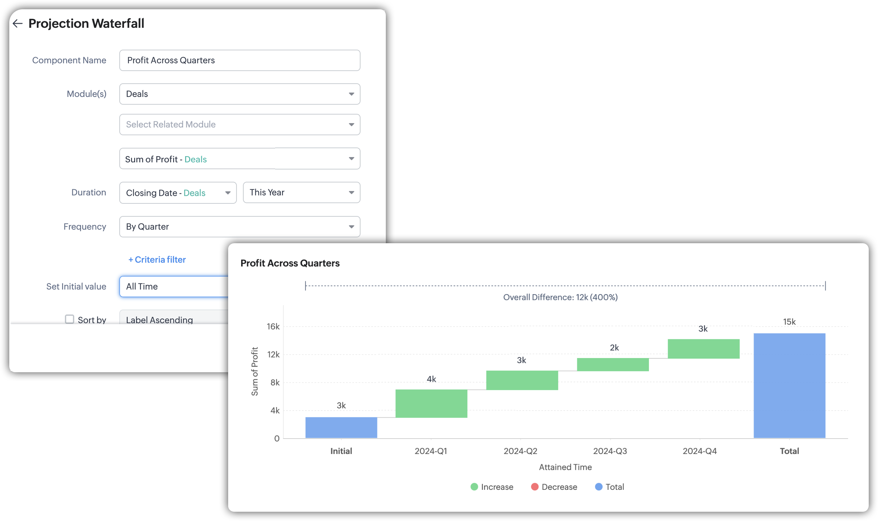 De exemplu, poți vedea o creștere de 4k, 3k, 2k și 3k în trimestre, ajungând la un profit total de 15k până la sfârșitul anului. Acest lucru ajută la prognozarea performanței trimestriale și la înțelegerea modului în care tendințele actuale pot modela rezultatul tău anual global.