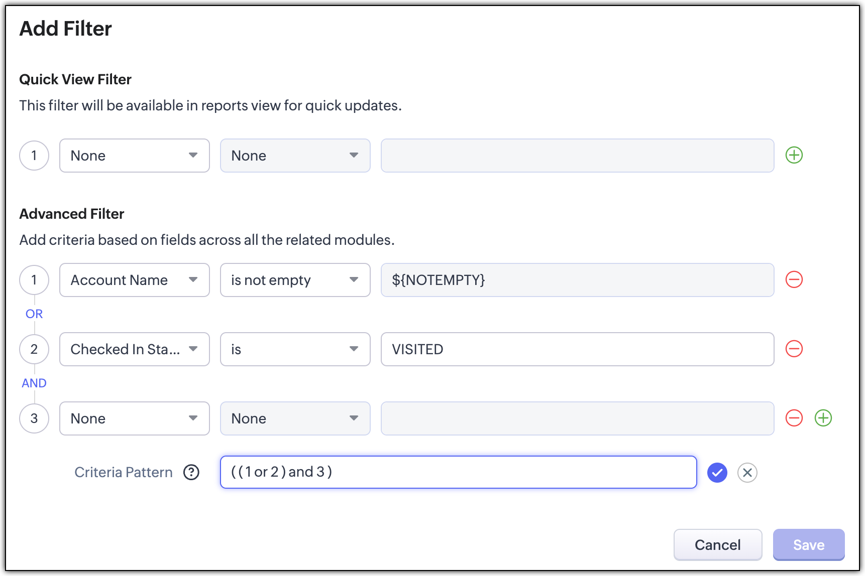 - Butoanele Save și Cancel din raport vor fi ascunse în timp ce editezi tiparul de criterii.