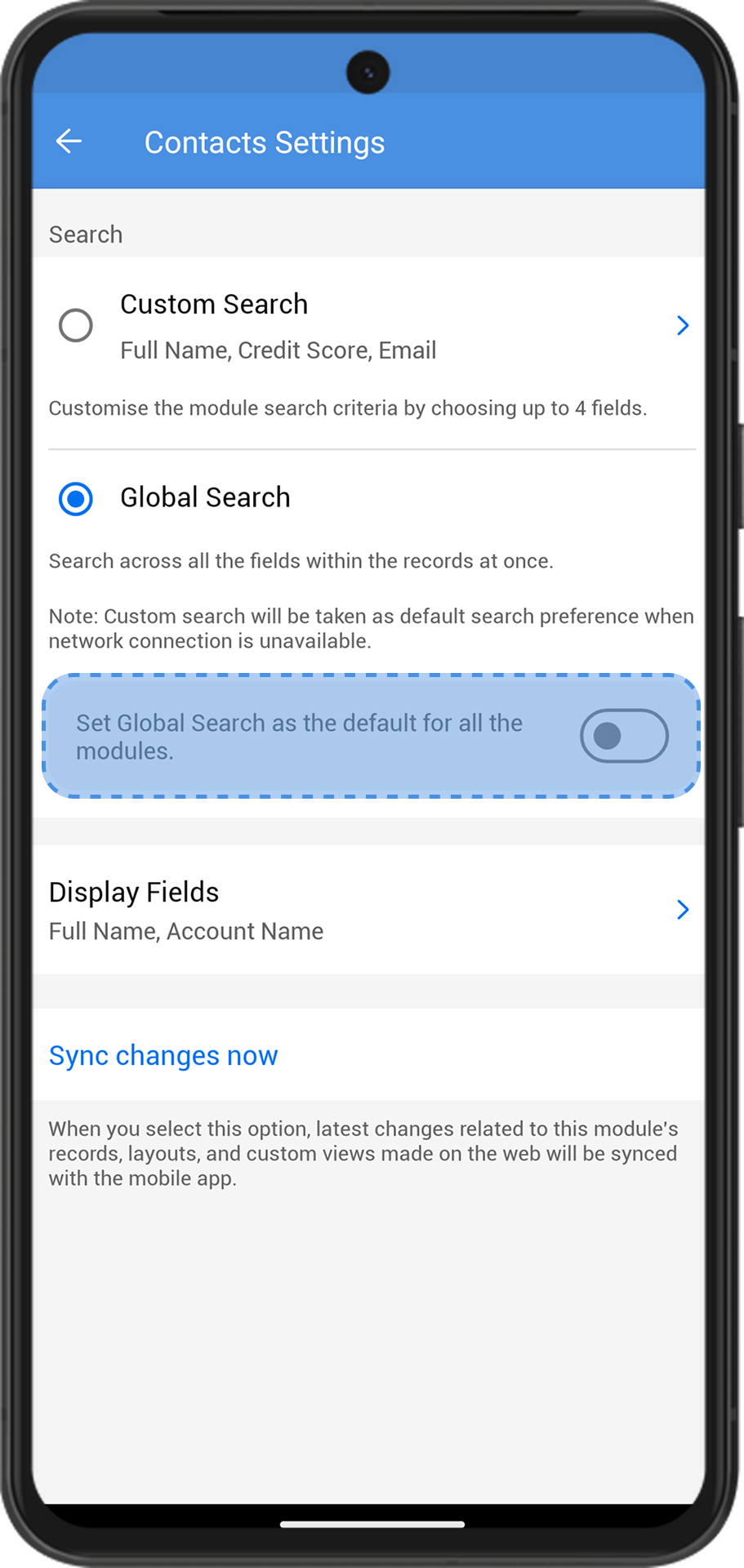 - Poți seta Căutarea globală ca opțiune de căutare implicită pentru toate modulele.