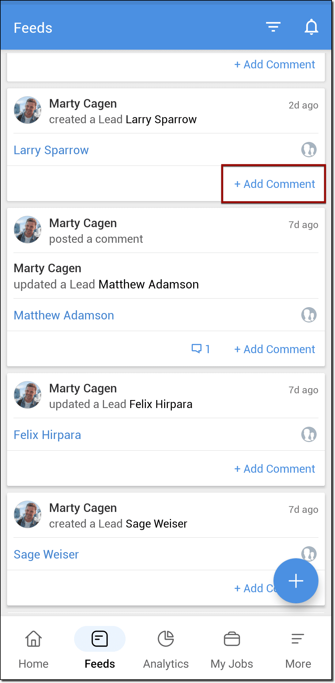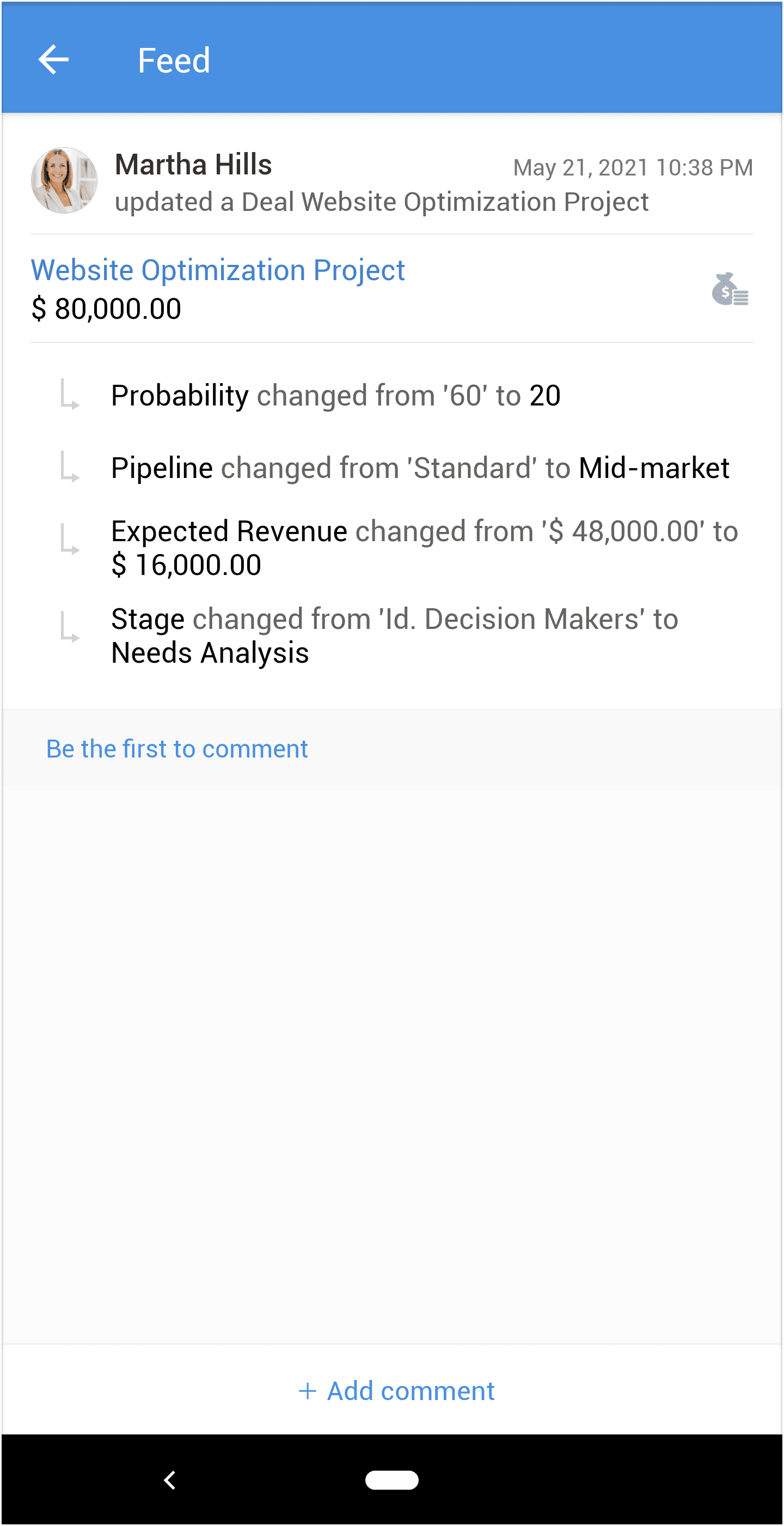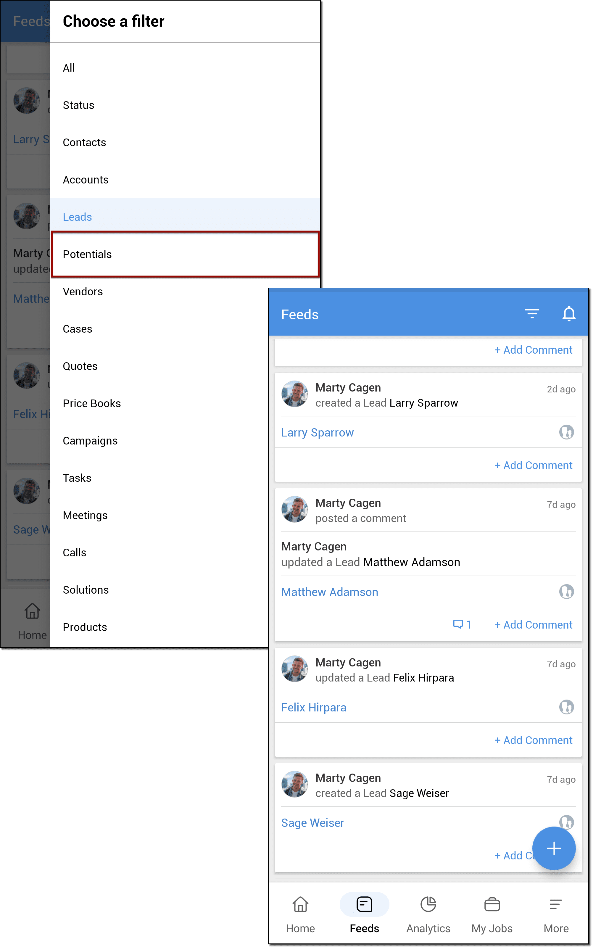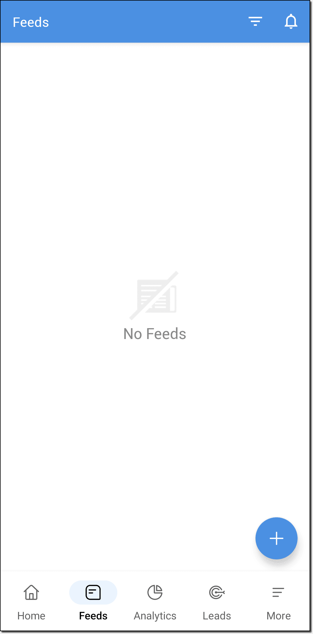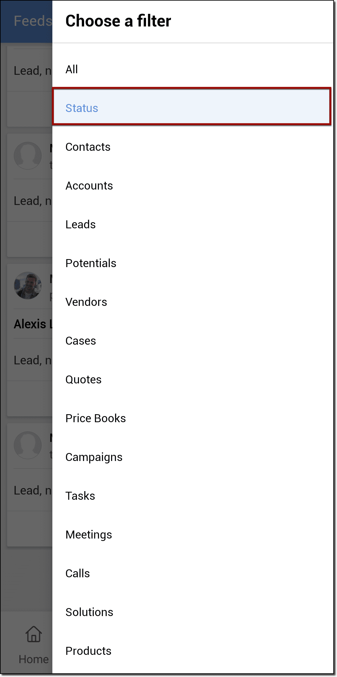 - Accesează Feeds în aplicația Zoho CRM pentru Android.