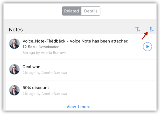 Poți înregistra concluziile despre o demonstrație recentă pentru un prospect sau gândurile despre o întâlnire cu un client cu ajutorul Note-urilor vocale. Poți asocia aceste fișiere audio înregistrărilor tale și le poți descărca oricând ai nevoie. Notele vocale vor fi contabilizate ca parte a limitei de stocare din Zoho CRM.