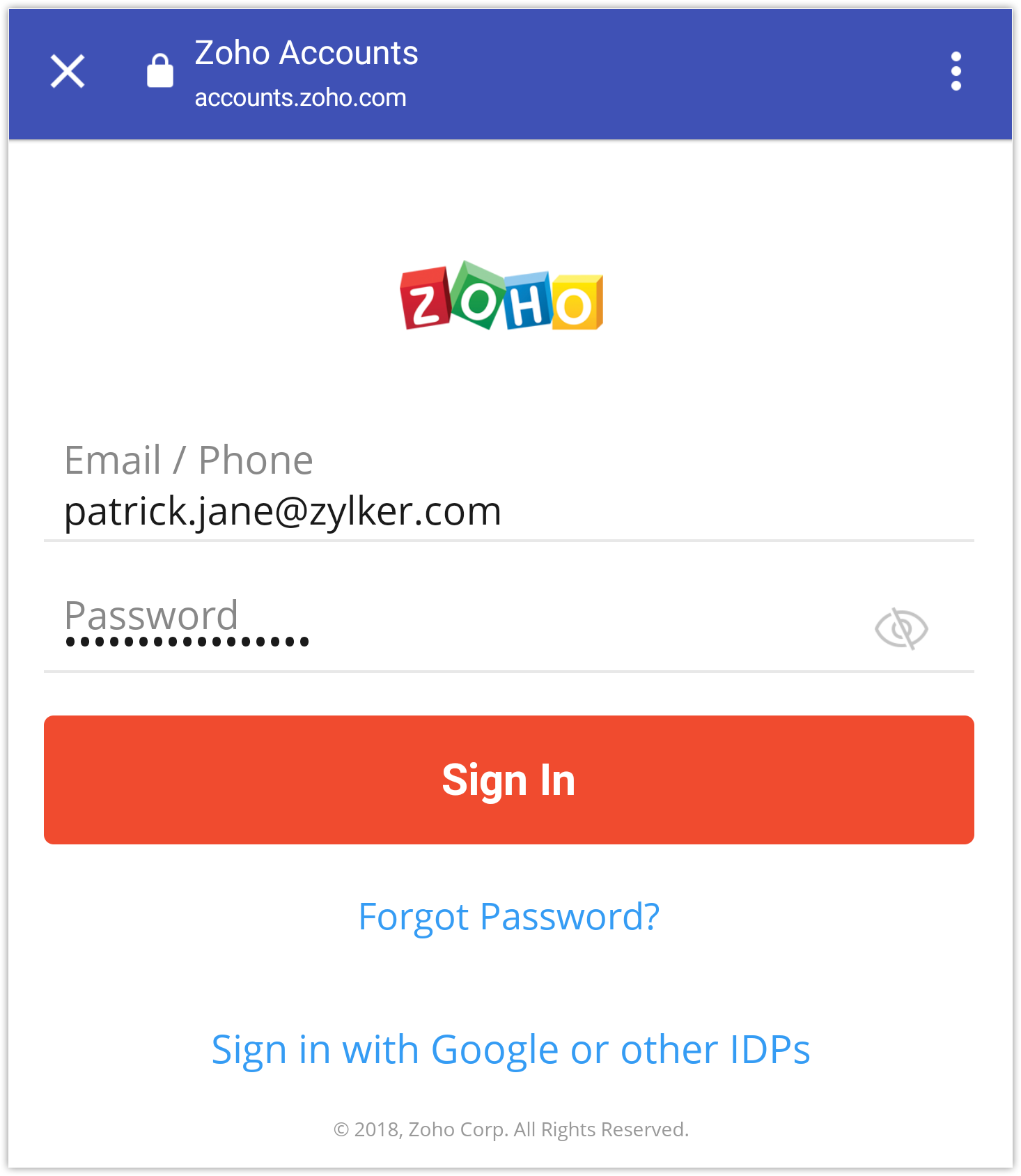 Dacă nu ai aplicația mobilă Zoho CRM, înregistrarea se va deschide în browser.