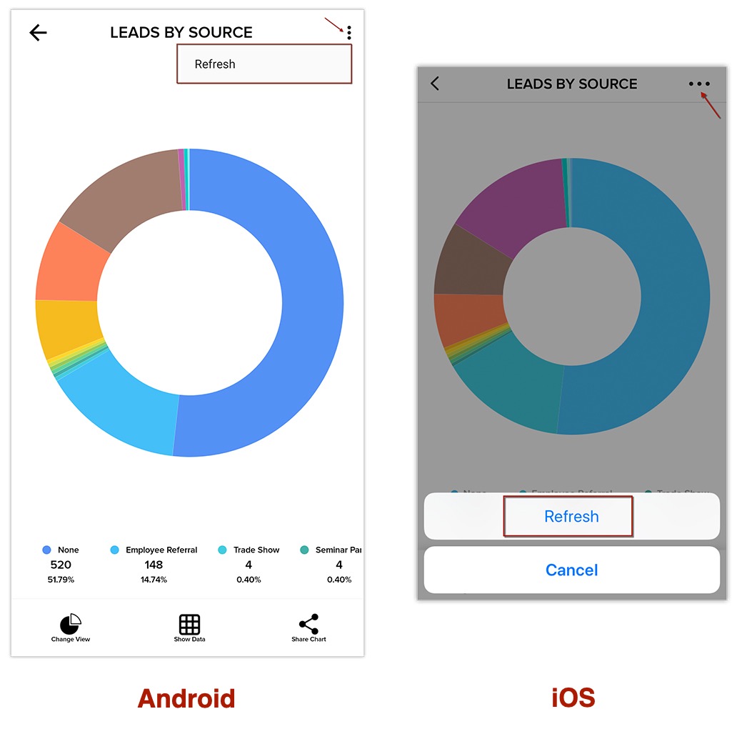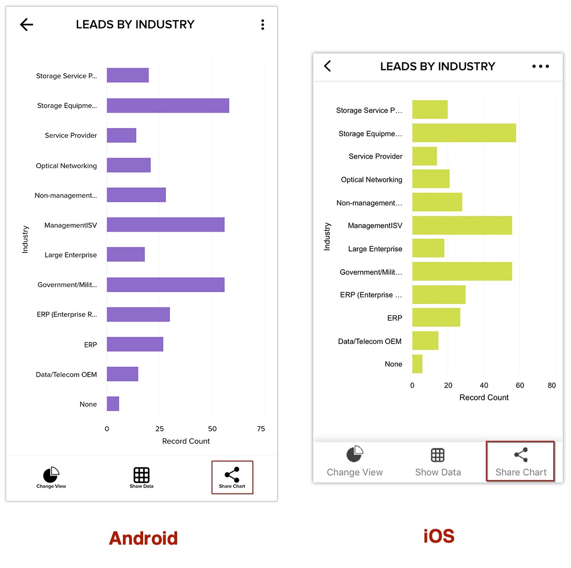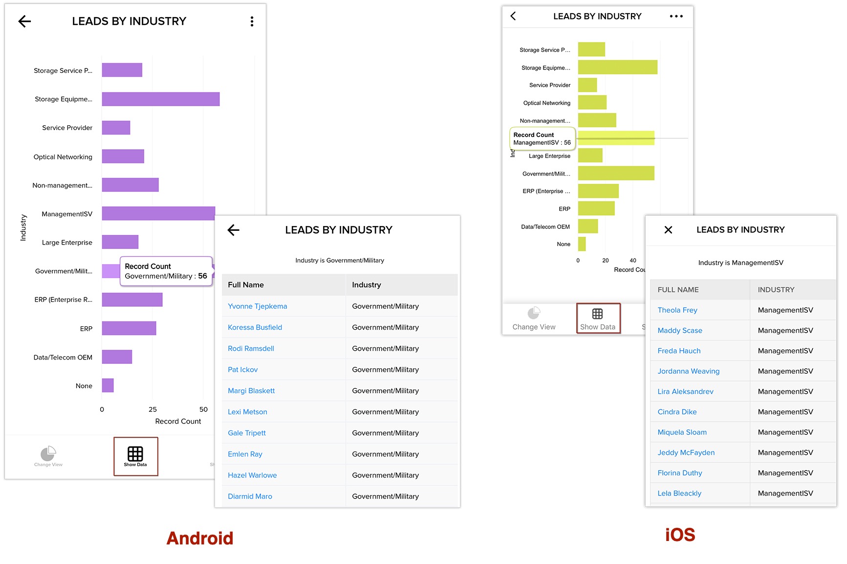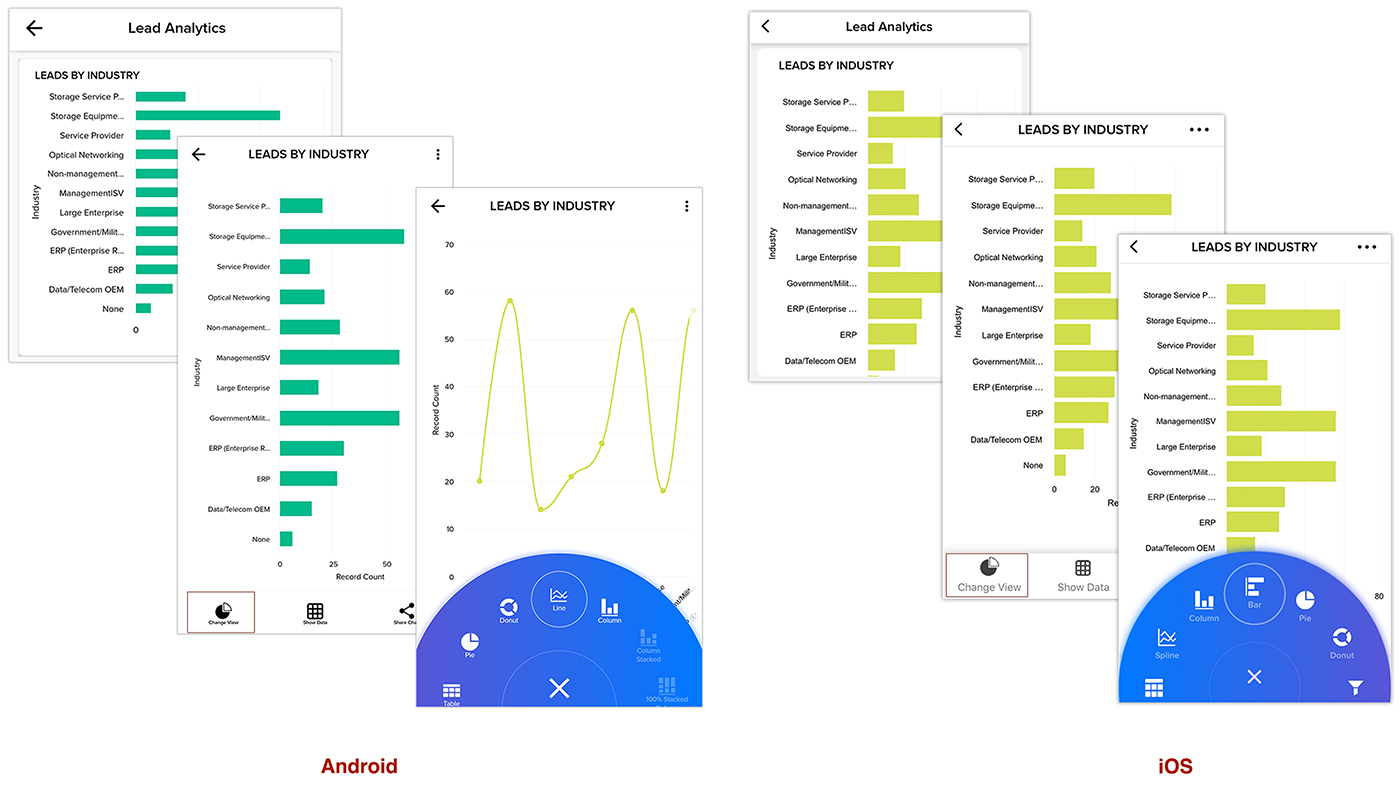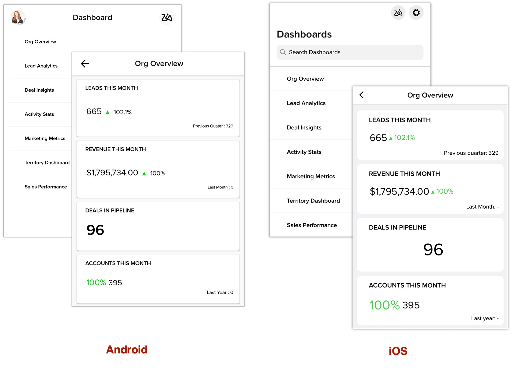 Pentru a te ține la curent, aplicația Zoho CRM Analytics îți permite să accesezi toate tablourile de bord pe care le-ai creat de pe dispozitivele tale mobile. Poți vizualiza datele subiacente pe care fiecare componentă le reprezintă sub formă de raport și poți deschide înregistrările folosite pentru a crea raportul. De asemenea, poți partaja componentele tabloului de bord cu colegii tăi. Acest lucru îți oferă un acces mai bun la CRM-ul tău oriunde te-ai afla.
