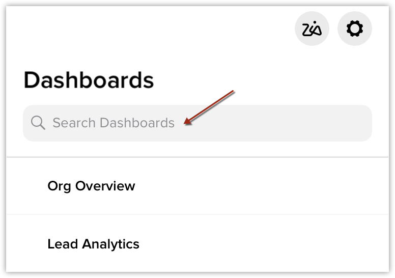 Butonul de căutare din fereastra Dashboards te ajută să găsești tabloul de bord pe care îl cauți.