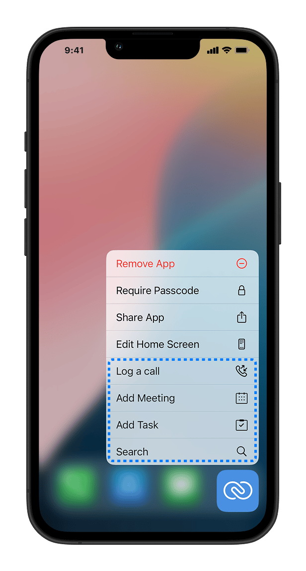 Acțiuni rapide din ecranul principal în aplicația Zoho CRM pentru iOS