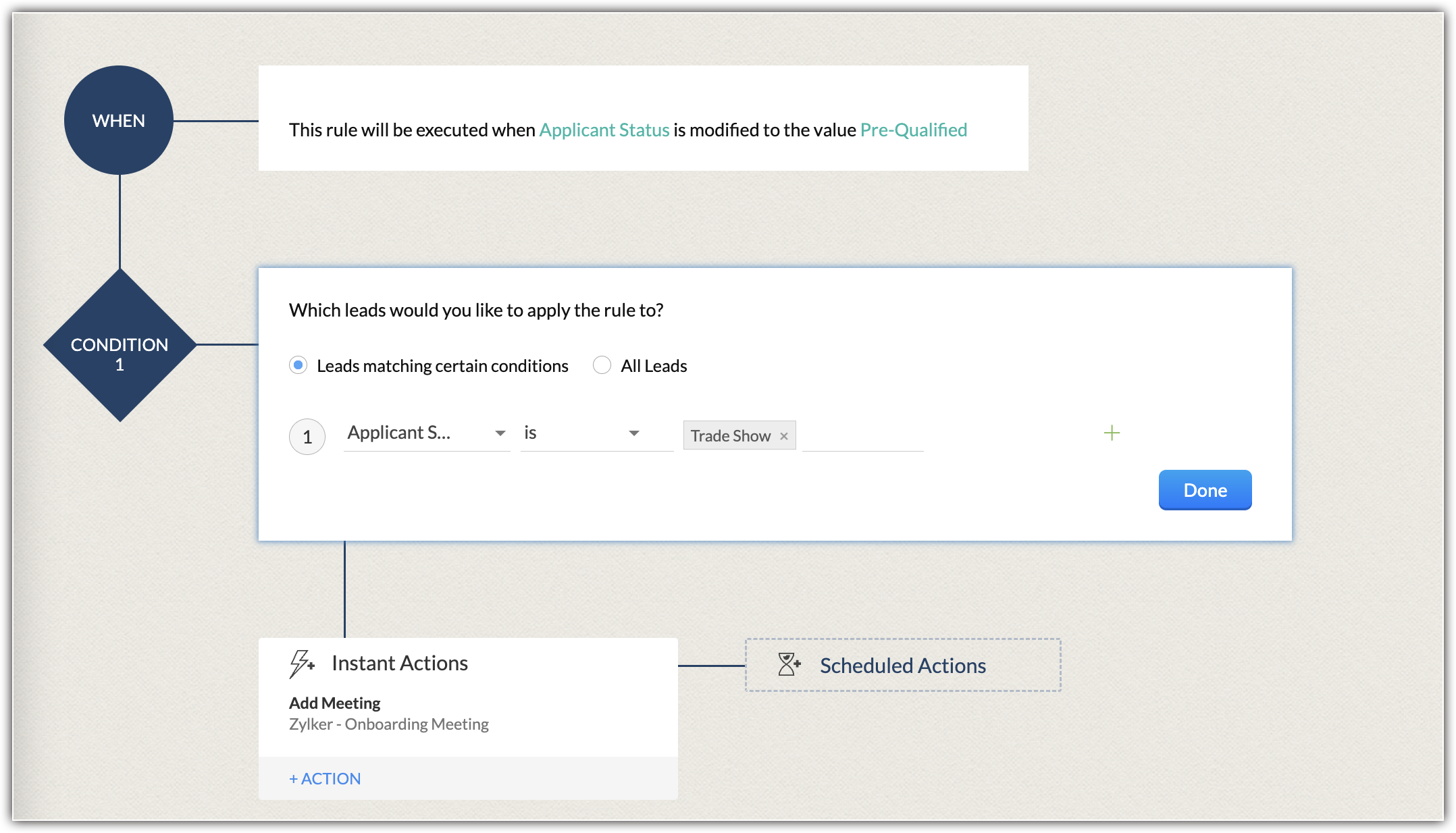 Dacă selectezi Ye s, introdu condițiile de flux de lucru dorite. - Apasă Done .