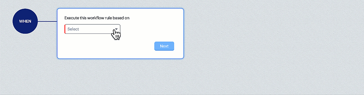 Există trei opțiuni pe baza cărora regula va fi declanșată pentru o înregistrare care îndeplinește criteriile regulii. Una dintre aceste opțiuni trebuie selectată când creezi o regulă de flux de lucru și nu o poți schimba ulterior prin editarea regulii. Acestea sunt: