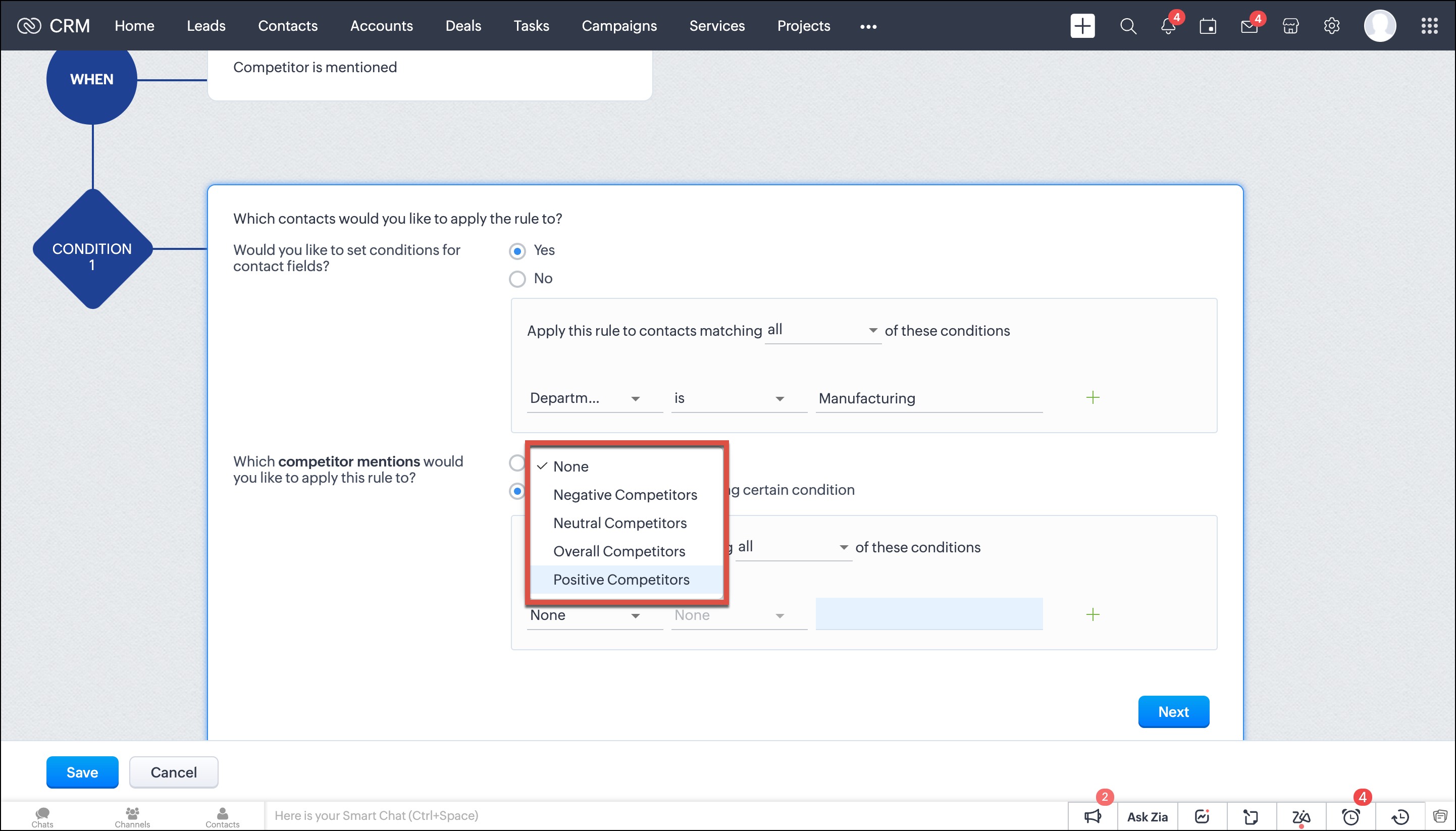 Crearea regulilor de flux de lucru în Zoho CRM
