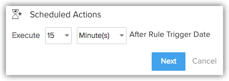 - Based on which Date/Time field this rule should execute: Alege una dintre opțiunile din Created Time, Modified Time, Last Activity Time și Unsubscribed Time.