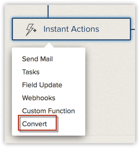 Asigură-te că caseta Execute workflow whenever this condition is met este debifată. Convertirea NU va fi declanșată de fiecare dată când criteriul este îndeplinit. - Apasă pe Instant Actions și selectează Convert.