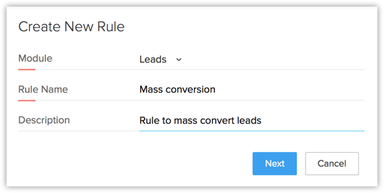 Poți de asemenea să editezi o regulă existentă și să adaugi acțiunea de convertire dacă punctele menționate mai sus sunt luate în considerare. - Specifică Informațiile de bază, adică numele Modulului, Numele regulii și Descrierea și apasă Next.