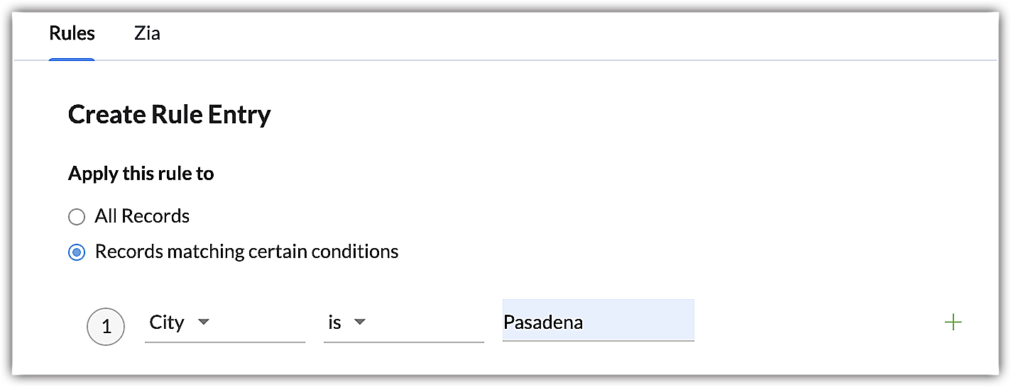 - În Apply this rule to, fă clic pe Records matching certain conditions și selectează câmpul și valoarea.