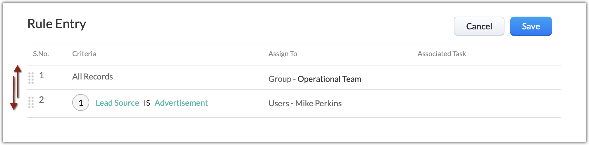 - Facilitează atribuirile bazate pe condiții: Poți automatiza atribuirea înregistrărilor pe baza condițiilor înregistrării, cum ar fi statusul leadului, țara, industria, etc., care se potrivesc cerințelor afacerii tale.