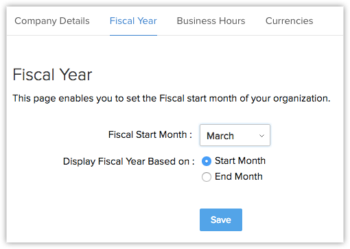 - În pagina Fiscal Year, selectează Fiscal Start Month din lista derulantă.