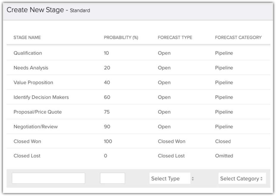 În orice proces de vânzări, o tranzacție trebuie să treacă prin mai multe etape până când este închisă sau pierdută. Pentru a se asigura că tranzacțiile nu stagnează inutil în aceeași etapă, echipa de vânzări trebuie să urmărească îndeaproape pipeline-ul de tranzacții. Modulul nostru Deals conține diferite etape, inclusiv calificare, propunere de valoare, negociere și câștigat închis, care apar într-un pipeline tipic de tranzacții de vânzări. Aceste etape sunt disponibile într-un câmp de tip listă numită Etapă. Poți adăuga câte etape dorești la pipeline-ul existent pentru a reflecta cu acuratețe procesul tău de vânzări. Iată câteva dintre modalitățile prin care un reprezentant de vânzări poate beneficia de un pipeline de vânzări: