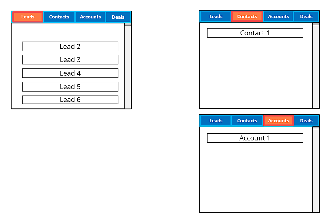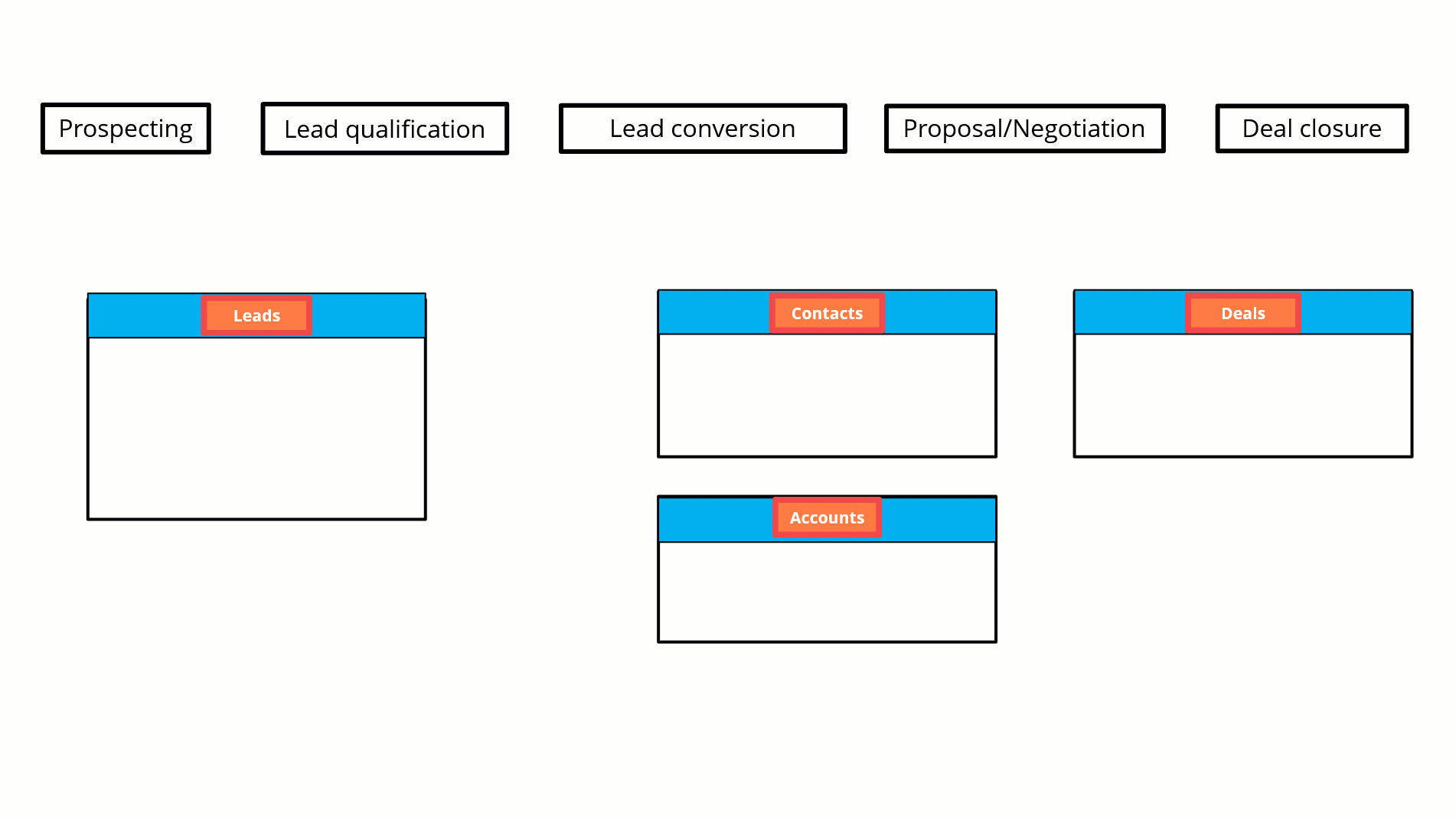 În Zoho CRM, nu creăm o singură înregistrare pentru un potențial client și nu îndesăm toate detaliile legate de parcursul său în acea singură înregistrare.