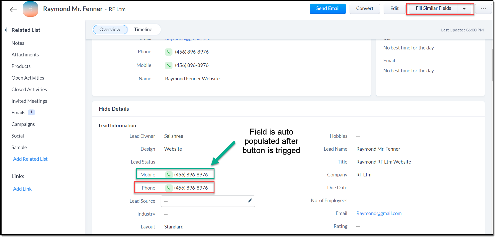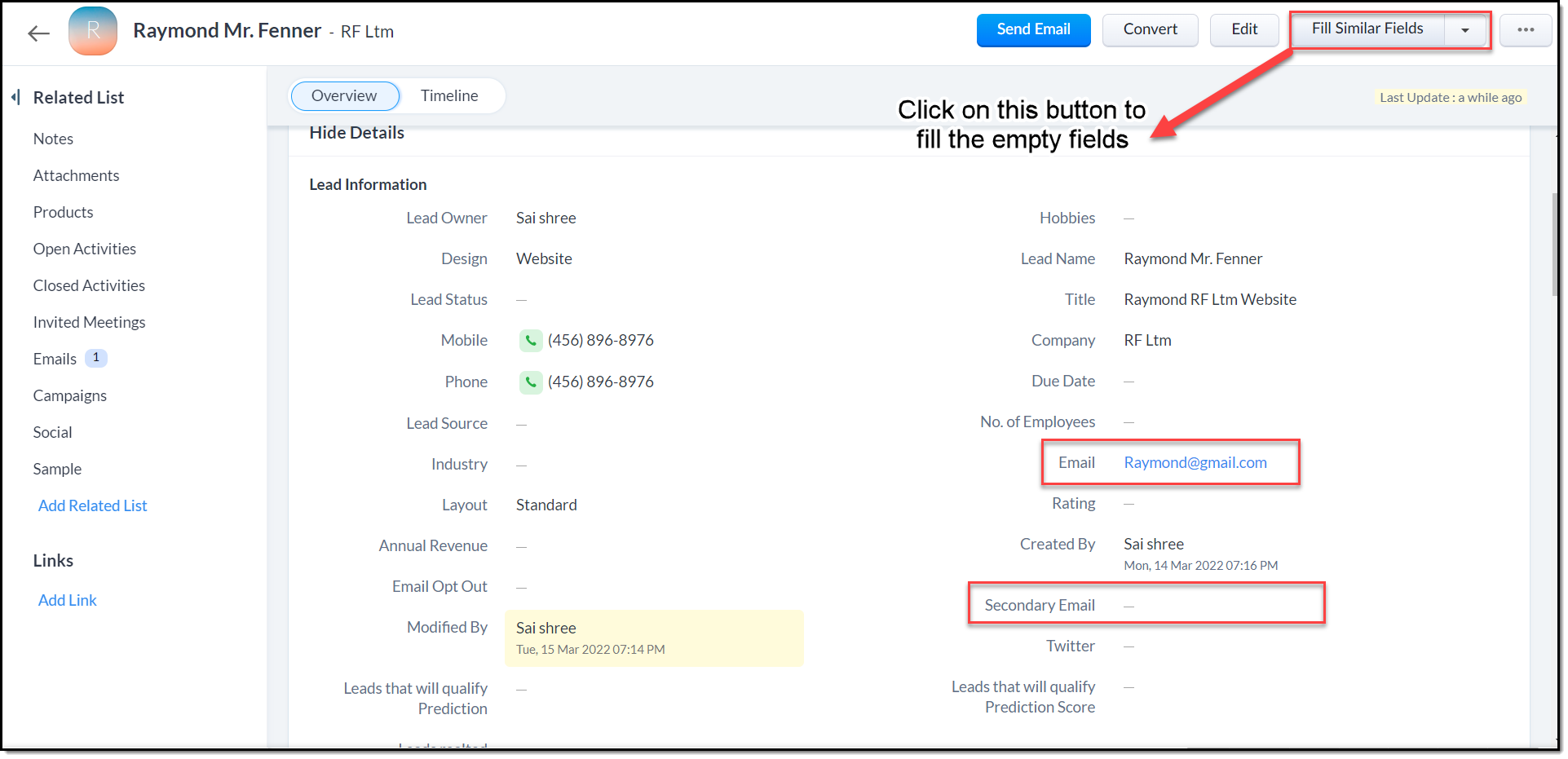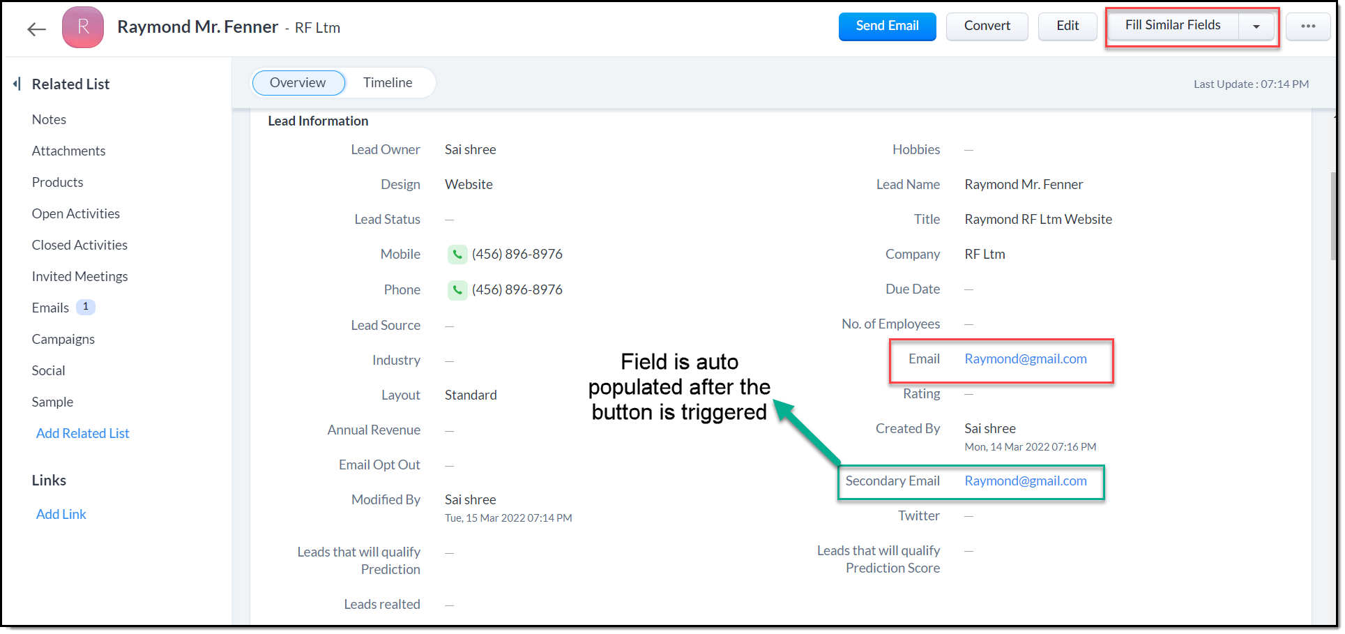 Când te gândești la datele pe care le adaugi în Zoho CRM, de multe ori poate vrei să introduci aceeași valoare pentru două câmpuri diferite într-o înregistrare.