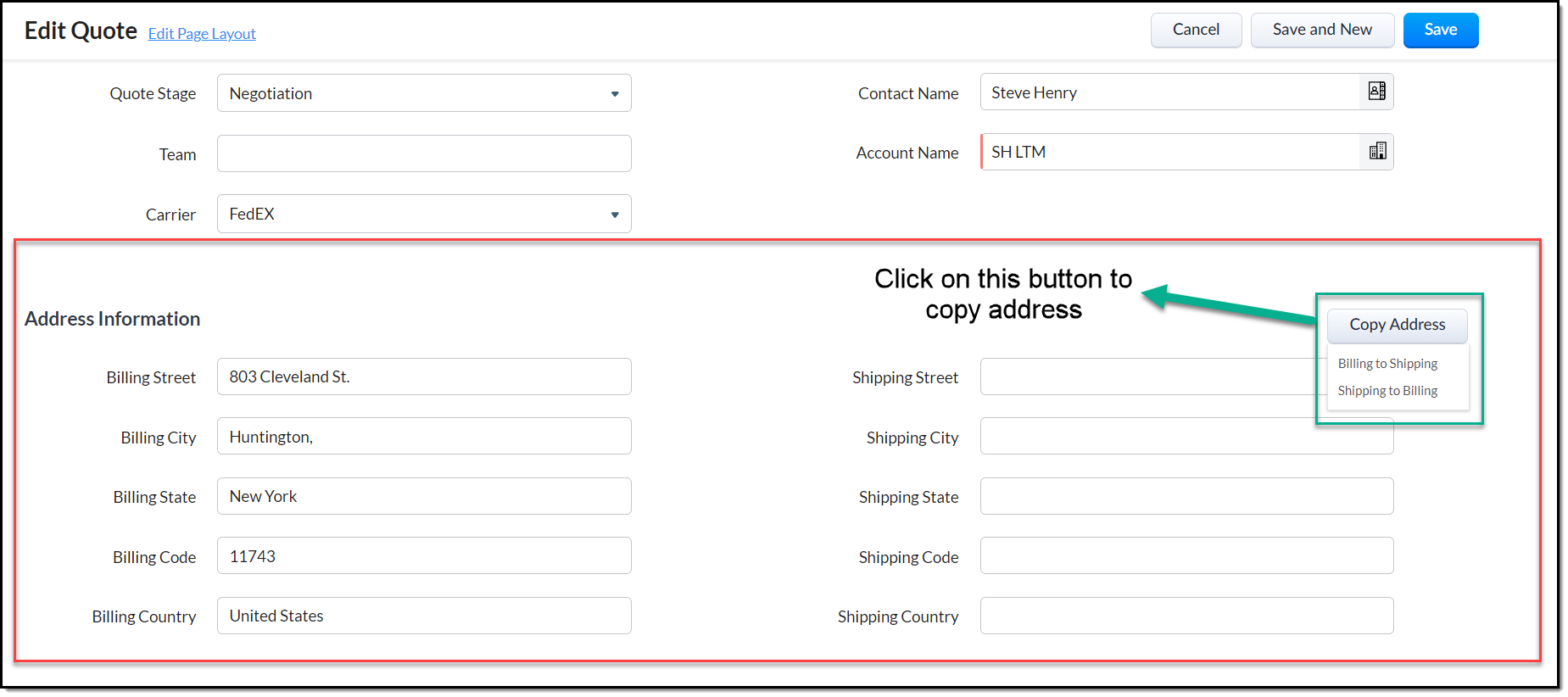 Această funcție este deja disponibilă în modulul Quotes. Mai mult, poate transfera date în ambele direcții. Adică, informațiile din câmpul 'A' pot fi mutate în câmpul 'B' și invers.