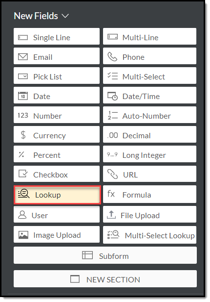 Pentru a adăuga un câmp de tip lookup,