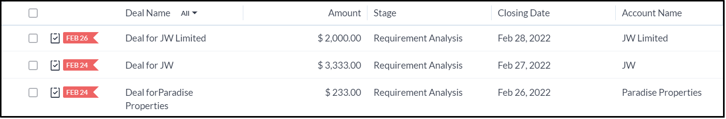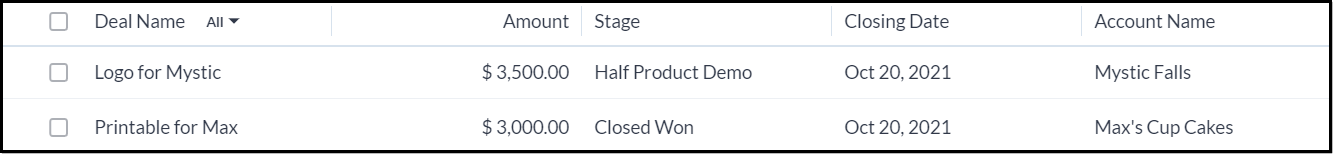 O organizație numită Zylker Inc dorește să standardizeze convenția de denumire pentru modulul Tranzacții. În prezent, în Zoho CRM, când creezi o tranzacție în urma conversiei unui lead, numele tranzacției este completat automat cu Numele Contului/Numele Contactului. În loc de aceasta, Zylker dorește ca numele tranzacțiilor să fie prefixate cu termenul „Deal for (contact/account)".