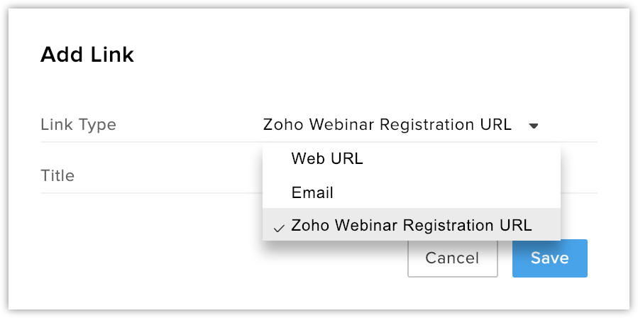 - La Link Type, alege Zoho Webinar Registration URL din lista derulantă.