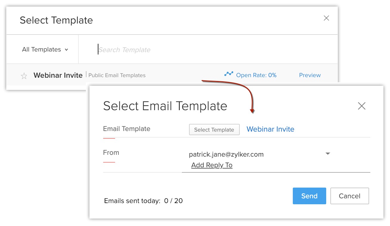 - Selectează un șablon de e-mail și fă clic pe Send.