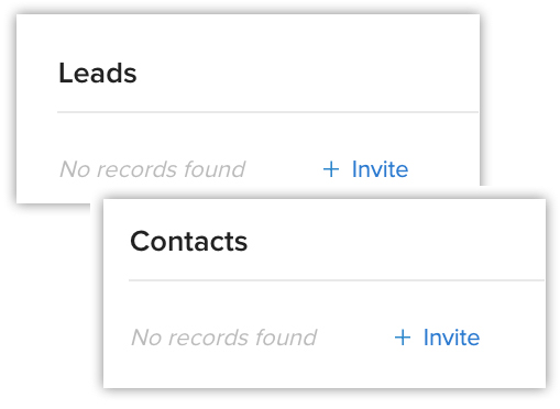 - Fă clic pe butonul + Invite din lista corelată Leads sau Contacts.
