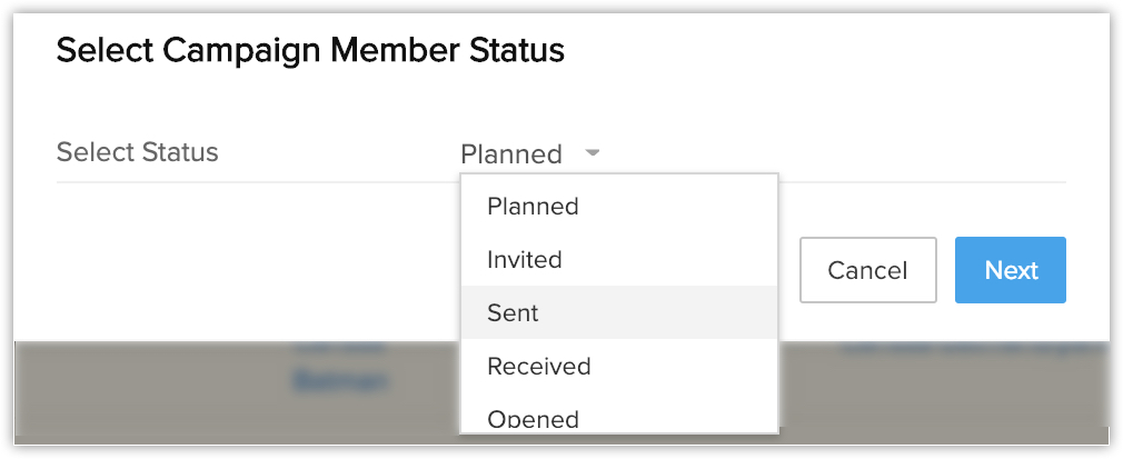 - Alege Campaign Member Status din lista derulantă și fă clic pe Next.