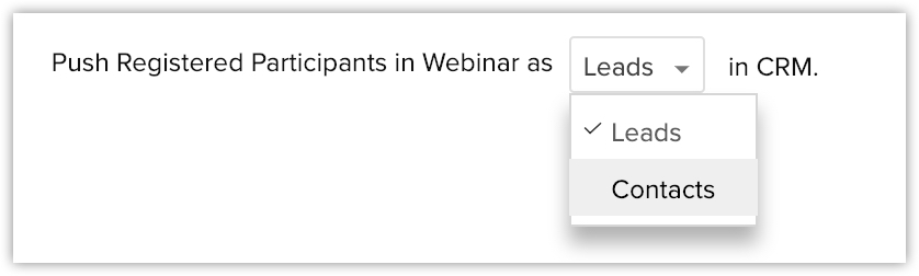 - La Push Registered Participants in Webinar to CRM, alege Leads/Contacts din lista derulantă.