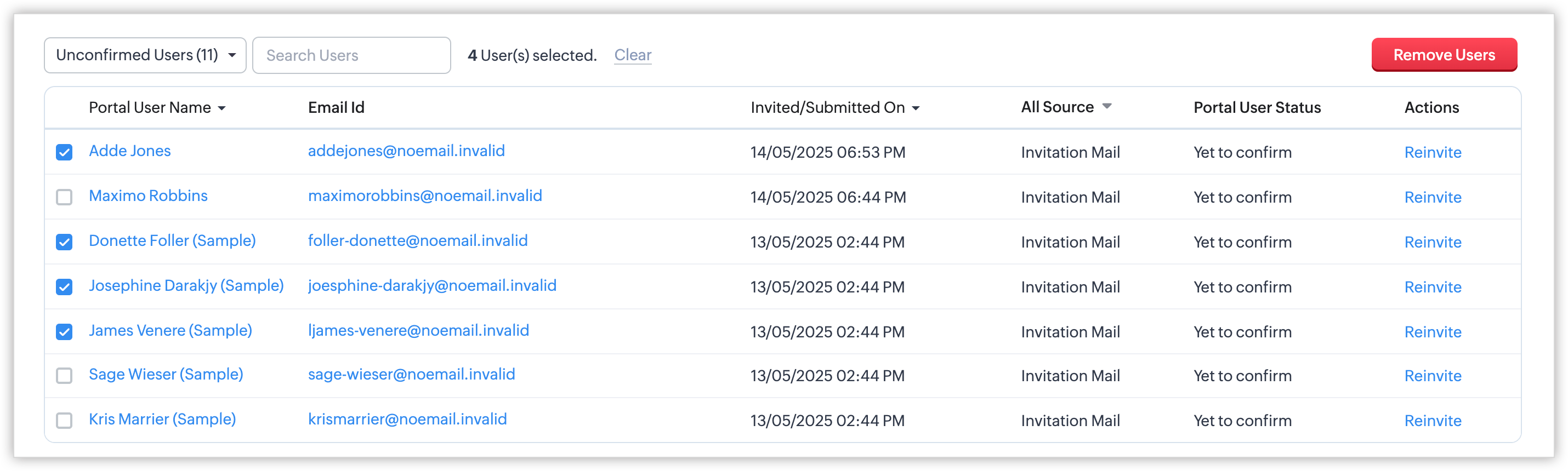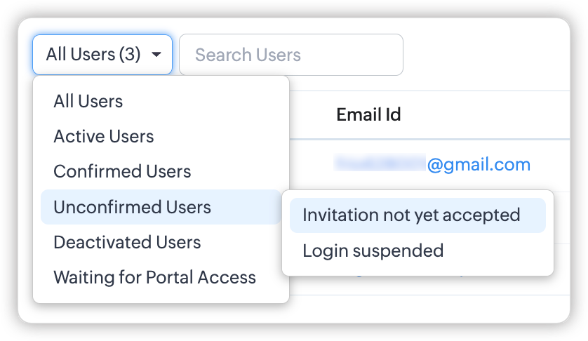 - Unconfirmed Users: Acești utilizatori fie nu au acceptat invitația trimisă, fie nu și-au confirmat adresa de email actualizată. Dacă un utilizator neconfirmat își actualizează adresa de email, rămâne neconfirmat.