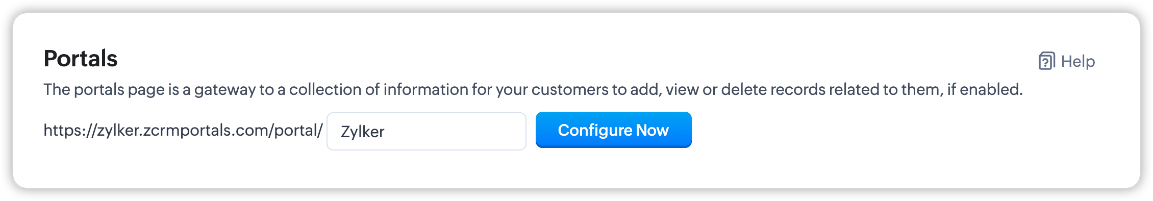 - URL-ul portalului pentru clienți va fi generat și numele portalului va fi disponibil. Fă clic pe Configurează acum.