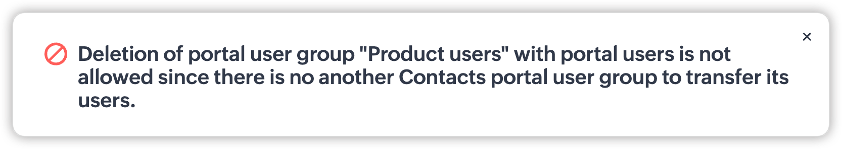 - Dacă există utilizatori în grupul de utilizatori și nu există alt grup de utilizatori al aceluiași modul, nu vei putea șterge un grup de utilizatori ai portalului.