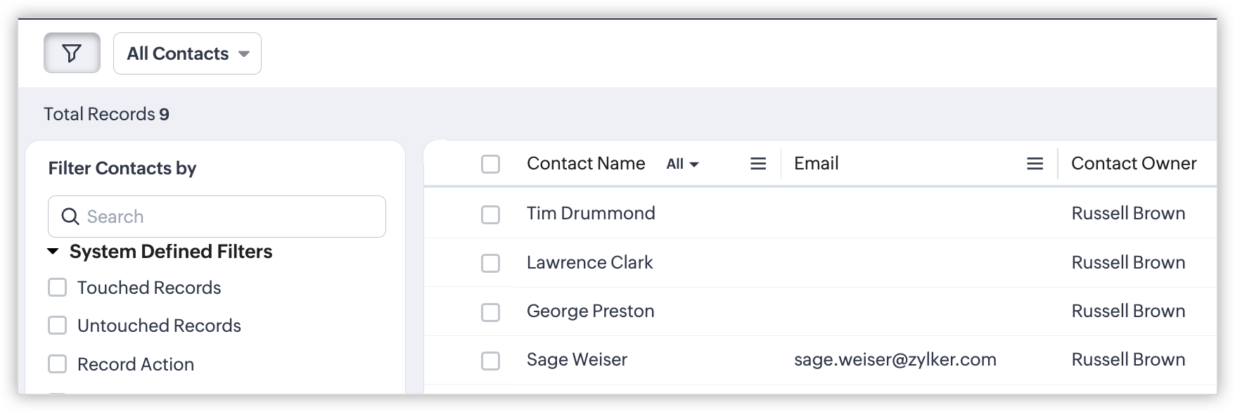 - Pentru parteneri de afaceri - Administrezi o companie de software și folosești CRM pentru a menține legătura cu contactele și lead-urile sau pentru a urmări mai multe tranzacții aflate în etape diferite. Există o întâlnire cu partenerii și dorești să discuți despre toate contactele și tranzacțiile cu cel mai mare venit. Imaginează-ți cât de complicat ar fi să partajezi aceste informații complexe cu fiecare partener în parte. Poți gestiona ușor această situație creând un portal pentru parteneri, în care le oferi acces la modulul Contacte și adaugi o căutare de contact în modulul Tranzacții din CRM. Astfel, aceștia vor putea vizualiza contactele și tranzacțiile asociate și pot adăuga sau elimina detalii din module în funcție de permisiunile lor.