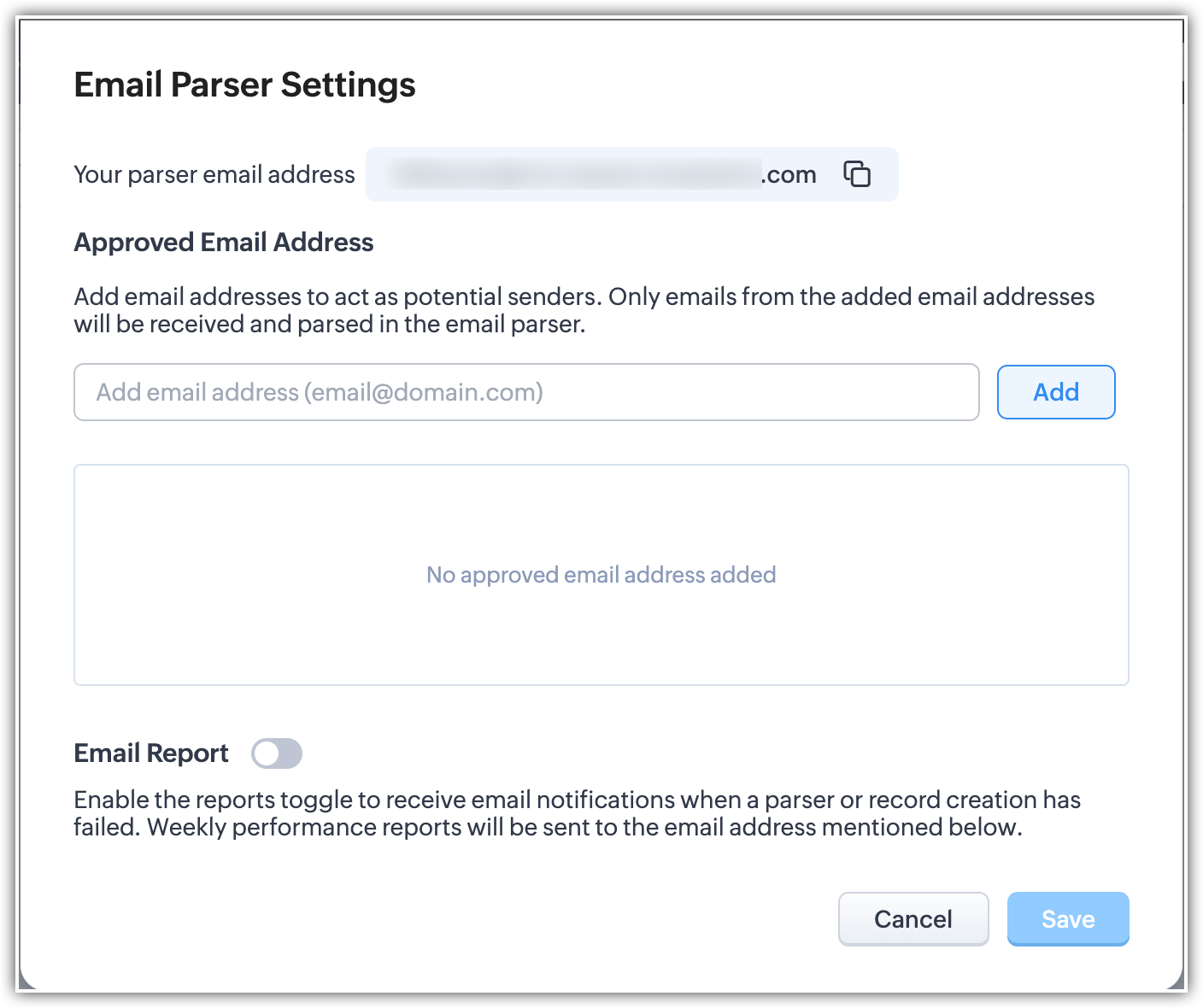 Extragerea datelor relevante din emailuri devine fără efort cu Email Parser-ul din Zoho CRM. Acest instrument recuperează automat informații din emailurile primite, creând înregistrări relevante sau personalizând orice acțiune în Zoho CRM. Această automatizare economisește timp și asigură că datele tale CRM rămân exacte și actualizate. Află mai multe despre Email Parser