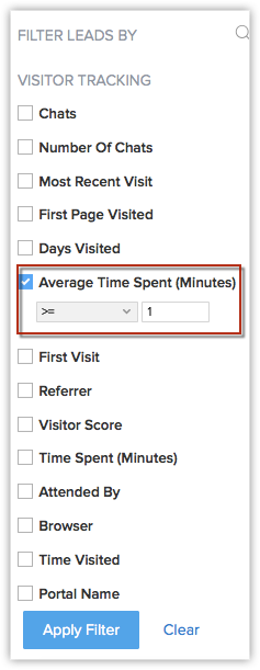 Filtrele avansate din CRM te pot ajuta să tragi astfel de concluzii despre lead-urile și contactele care îți vizitează site-ul web, cu ajutorul parametrilor de urmărire a vizitatorilor. Vei putea filtra lead-urile și contactele pe baza unor câmpuri precum Timpul mediu petrecut pe site, chat-urile ratate, browserul utilizat pentru a accesa site-ul etc. Iată câteva scenarii în care informațiile de urmărire a vizitatorilor te pot ajuta să tragi concluzii importante.