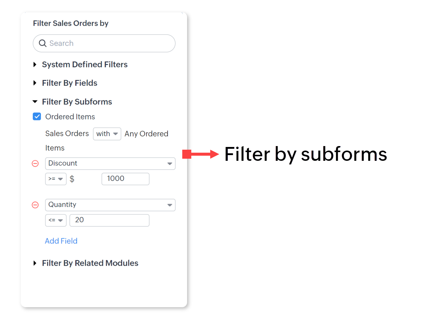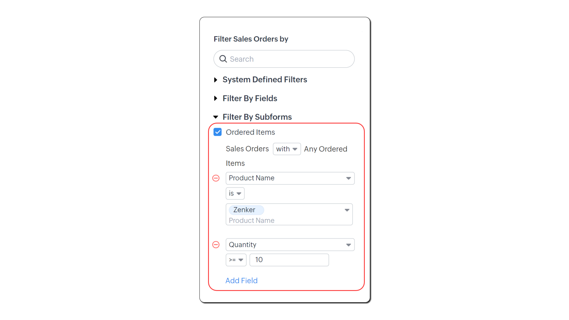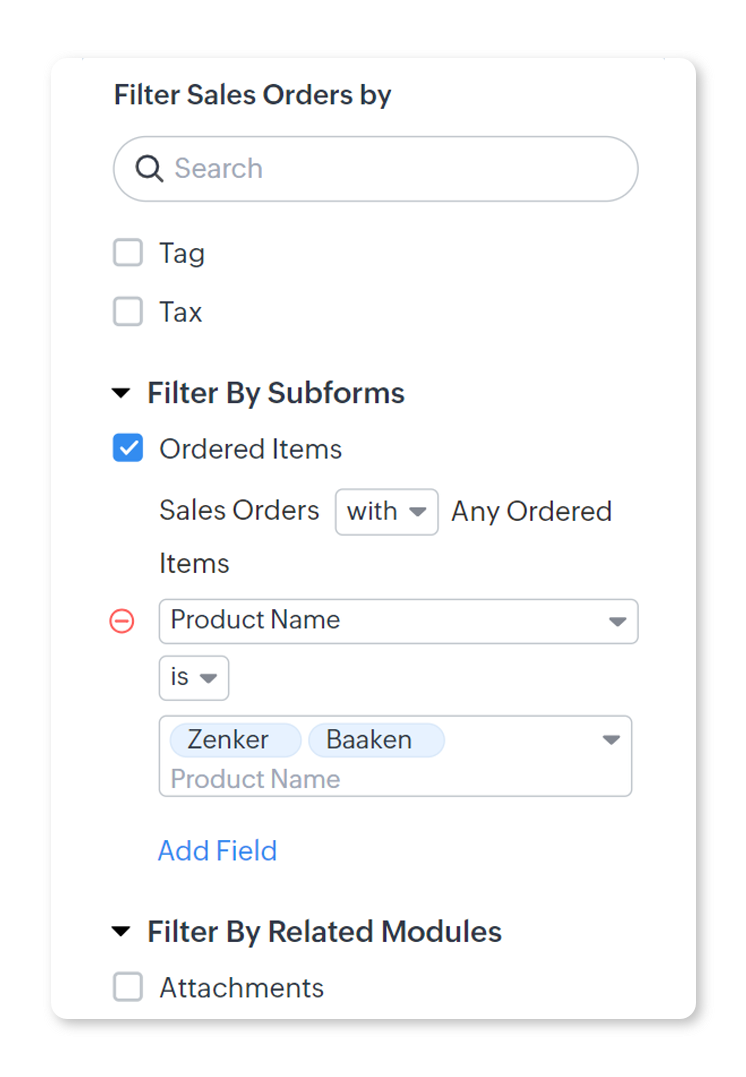 - Sub Filter Sales Orders By, accesează Filter by Subforms.