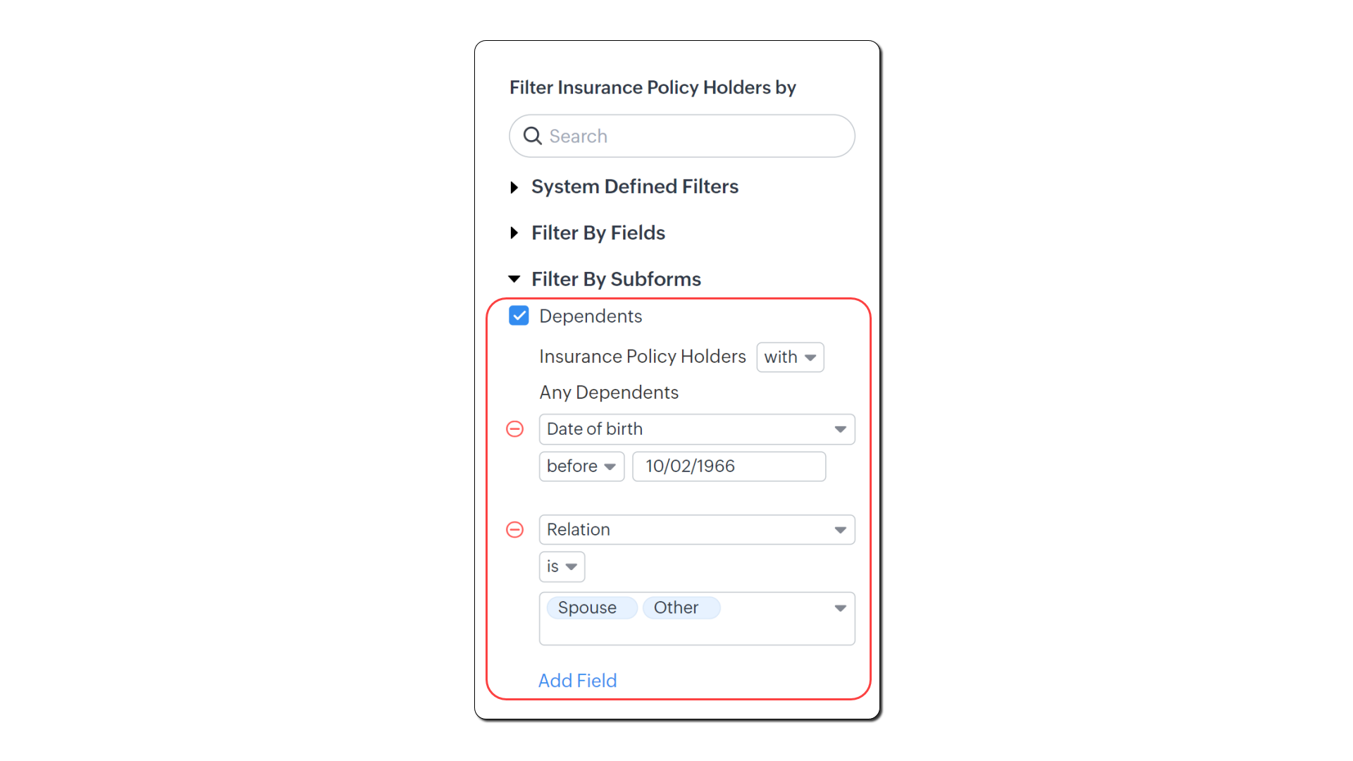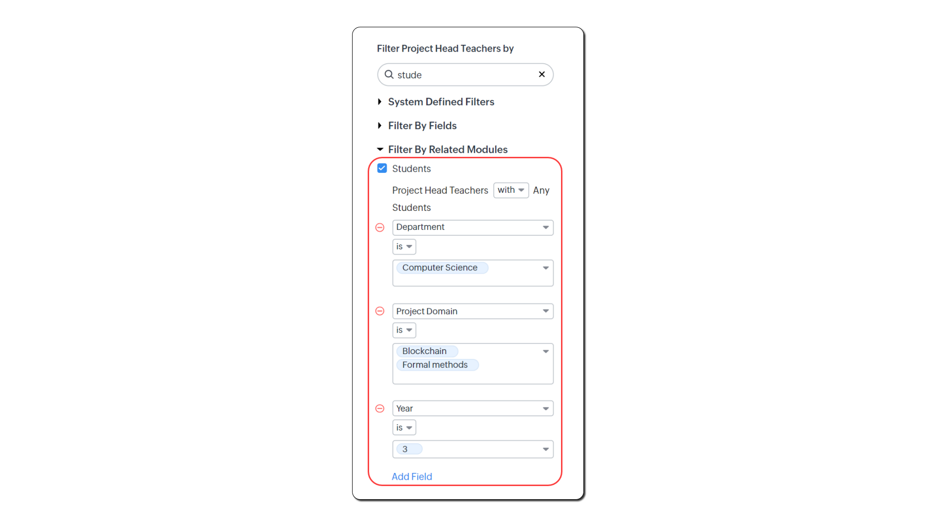 - Fă clic pe Add Field.