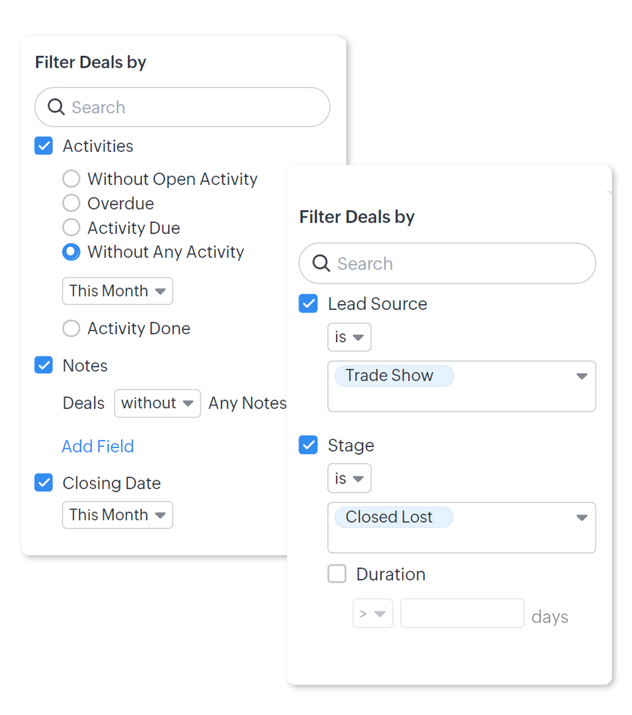 Lucrezi cu un nou set de lead-uri în fiecare săptămână. În timp, pierzi evidența lead-urilor care aveau nevoie de o a doua sau a treia urmărire. În realitate, printre acele lead-uri inactive ar putea fi o oportunitate excelentă care te așteaptă — dar numai dacă dai curs urmăririi. Filtrele avansate pot filtra astfel de înregistrări pentru tine în câteva secunde.