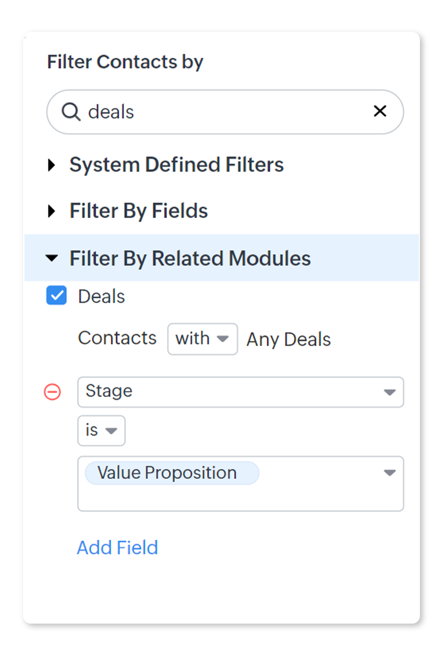 - Selectează Stage > is > Value Proposition.
