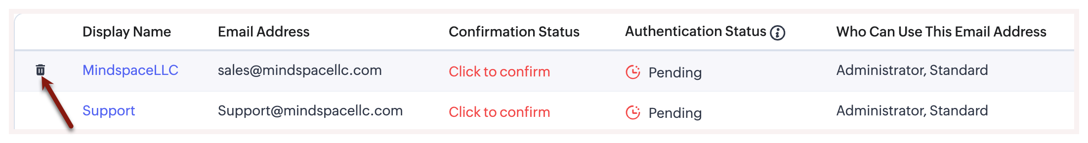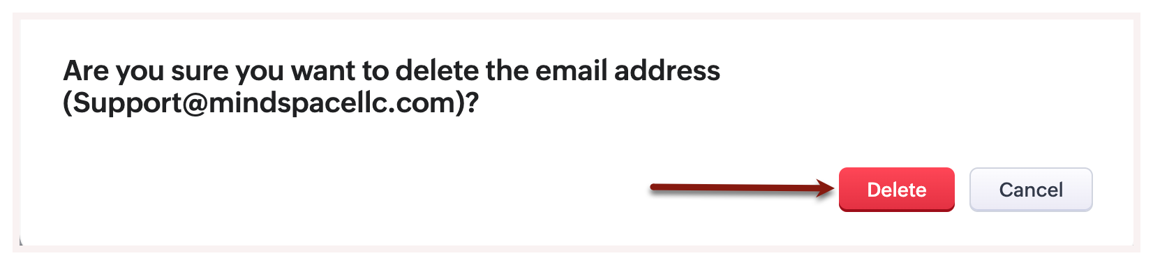 - Apasă pe Delete pentru a șterge adresa de email a organizației.
