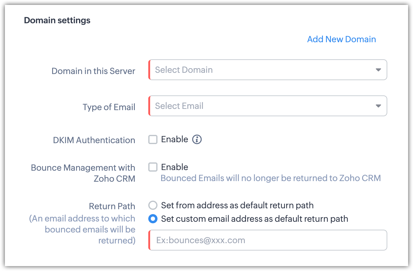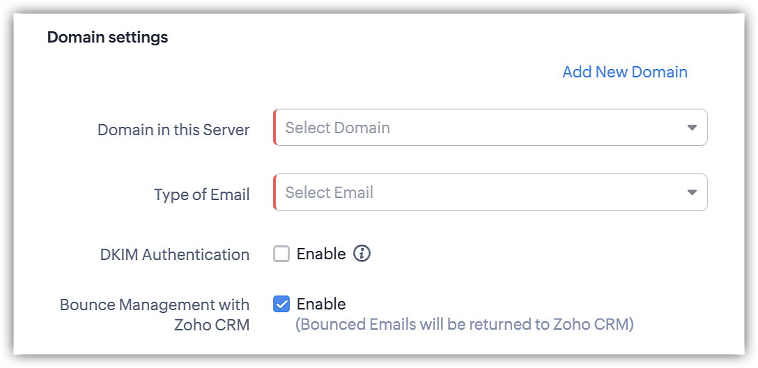 Îți recomandăm să semnezi DKIM cu Zoho CRM pentru a exclude orice posibilități de livrare nereușită. Cu toate acestea, poți să-l activezi și cu furnizorul.
