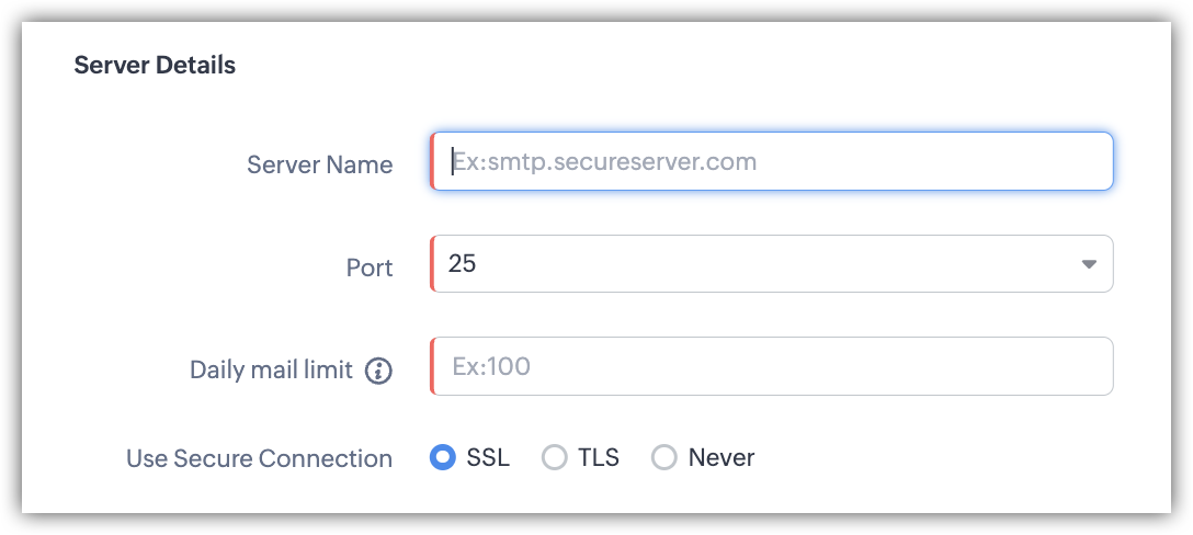 Reține că trimiterea emailurilor prin serverul relay nu modifică limita de emailuri stabilită pentru o ediție. De exemplu, conform ediției CRM la care ești abonat, dacă limita ta zilnică pentru trimiterea emailurilor este de 5000 emailuri/zi, atunci poți aloca un anumit număr de emailuri, cum ar fi 2000, pentru a fi trimise de pe serverul relay. Restul de 3000 emailuri vor fi trimise de pe serverul Zoho CRM.