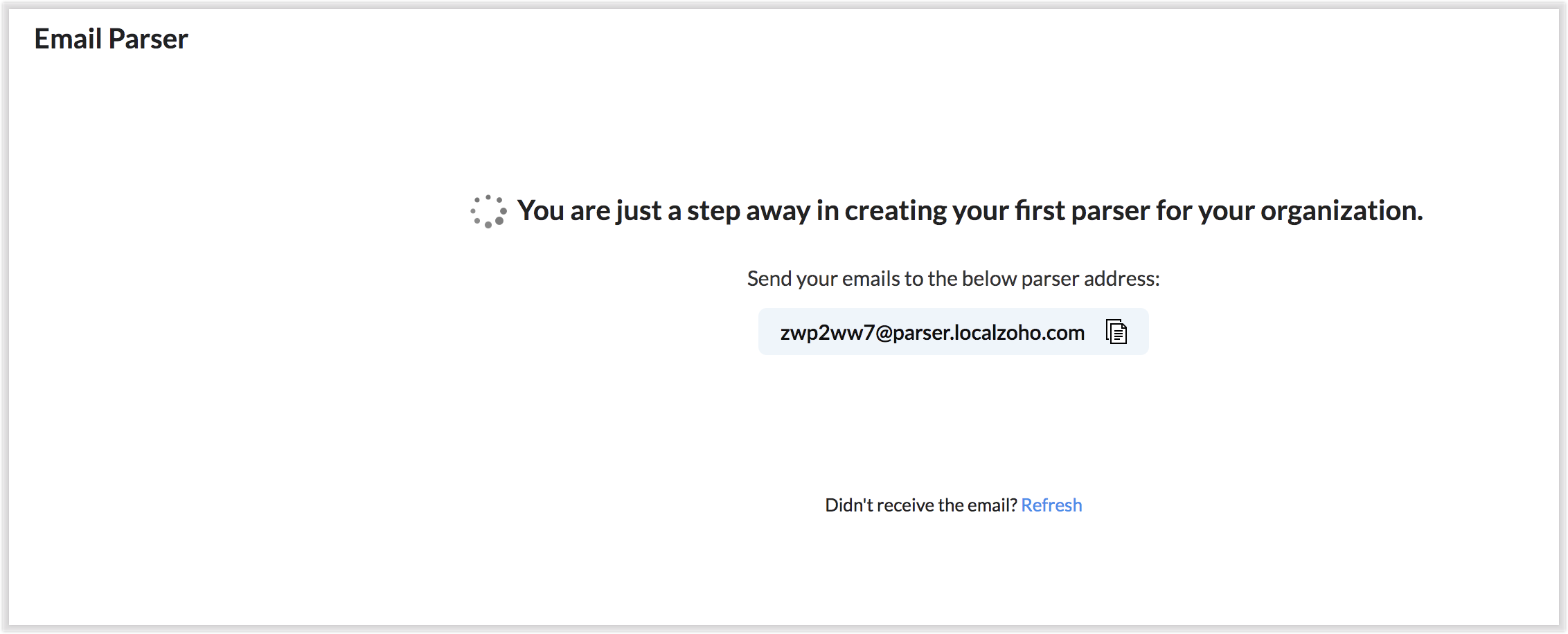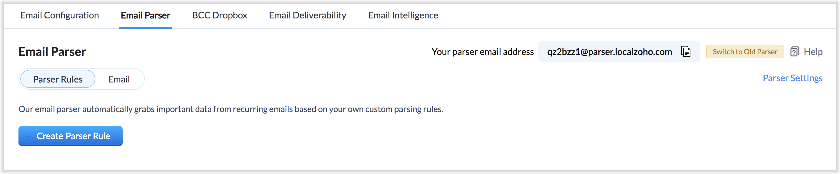 E-mailul tău de parser va fi generat și gata de utilizare și este comun pentru toate regulile de parser.