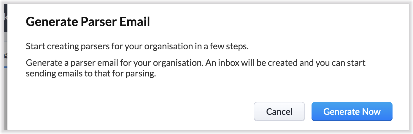 Apoi, este posibil să vezi următorul ecran - acesta este un semn că trebuie mai întâi să trimiți un e-mail către ID-ul de parser menționat pentru a crea primul tău parser.
